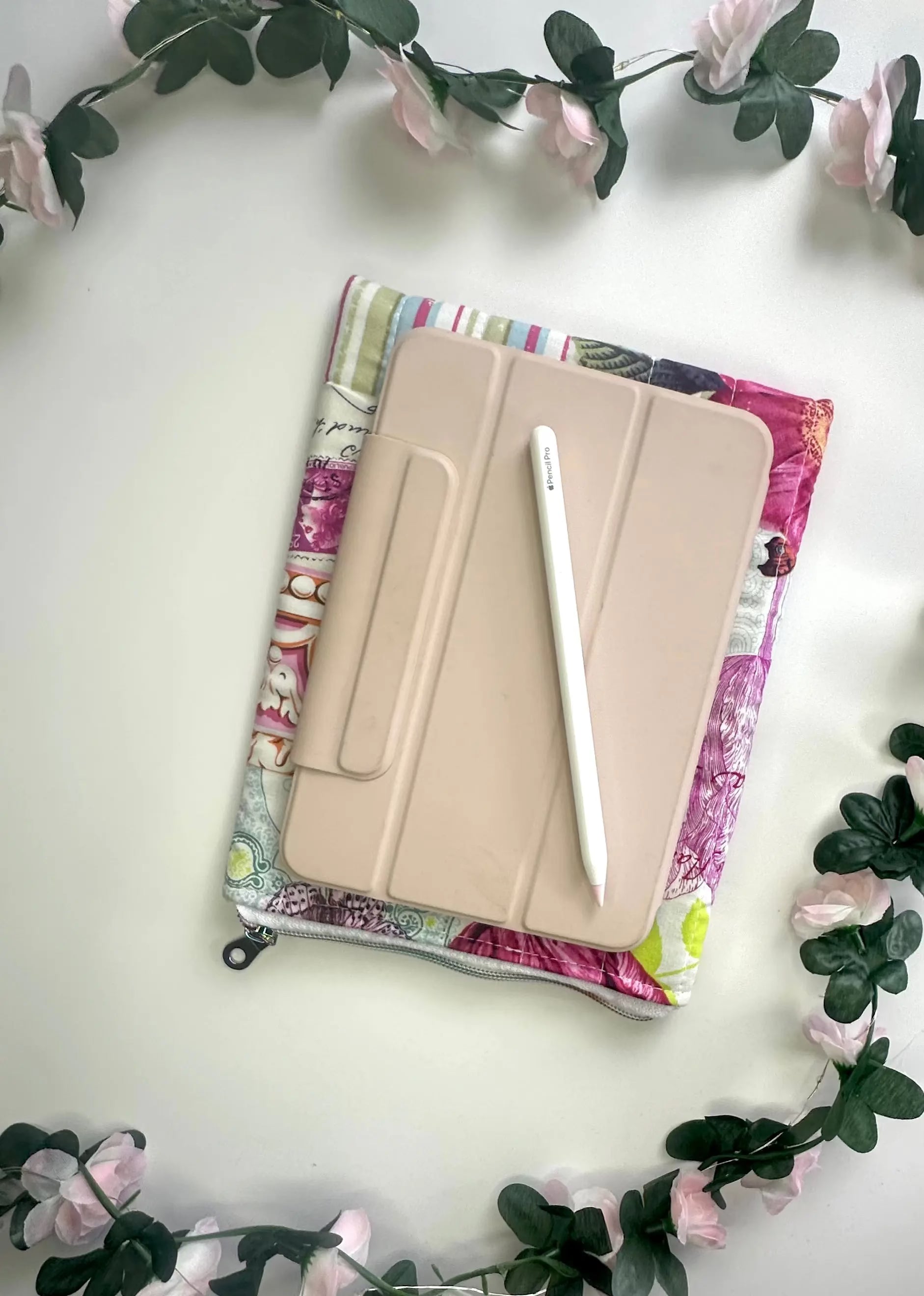 ingeniously crafted by stitching a layer of plush padding, offers unparalleled cushioning, providing the ultimate protection for ipad mini's and e-readers, and Books alike. Versatile in nature, this remarkable sleeve caters to your digital needs, accommodating tablets, notebooks, and journals with grace. 🎀📝 An ideal choice for gifting, the ipad mini / e-reader Book Sleeve is a delightful present, perfect for any occasion, encapsulating both beauty and practicality in one splendid accessory. Elevate your storage experience today!